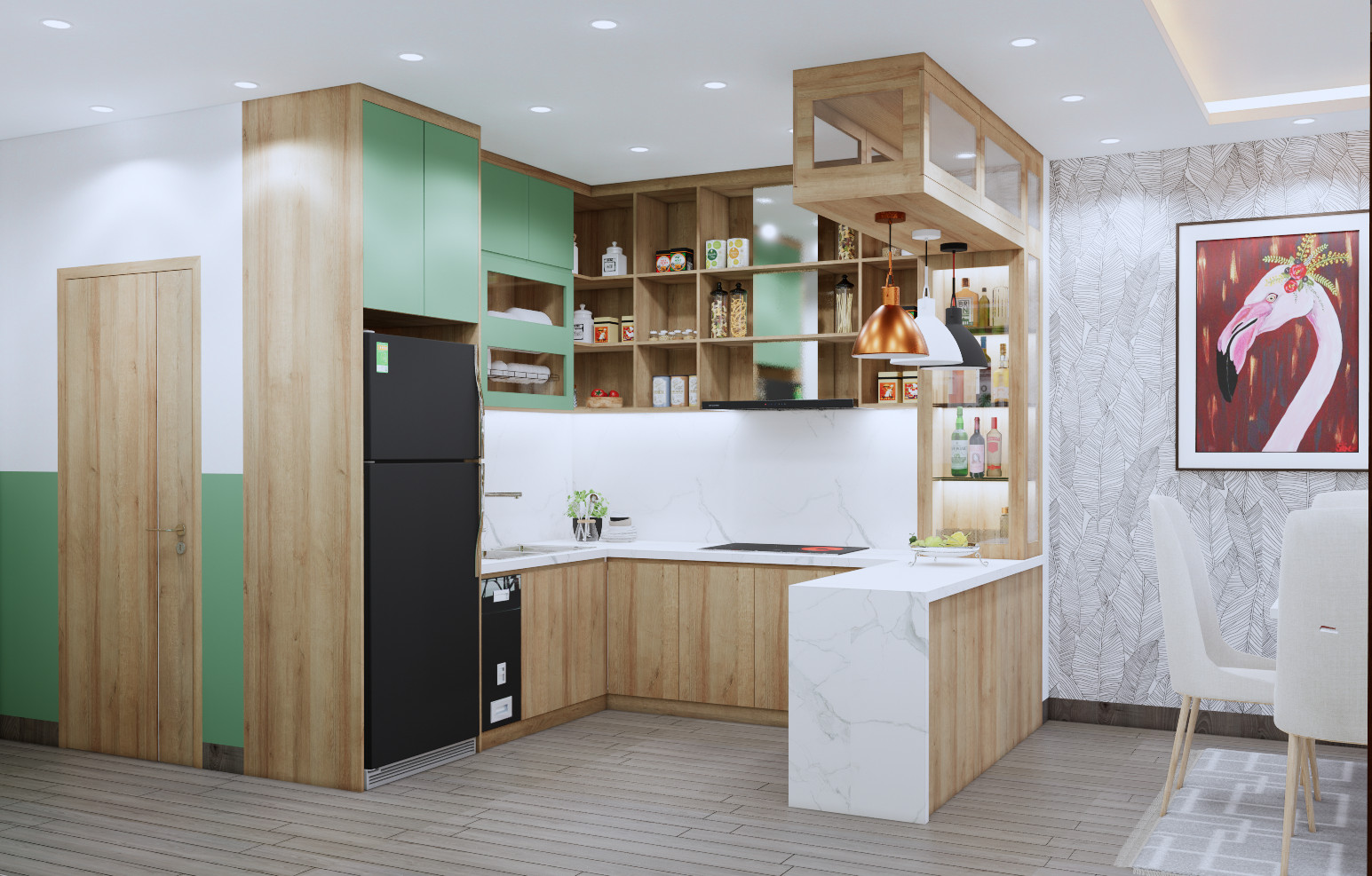 Xanh lá là gam màu biểu tượng cho thiên nhiên và sự tươi mới. Việc ứng dụng màu xanh lá trong thiết kế nội thất sẽ giúp không gian tràn đầy sức sống.