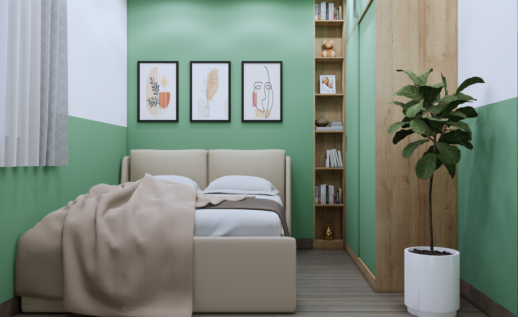 Tuy nhiên, bạn cần phải biết cách phối hợp khéo léo mới tạo nên sự ấn tượng khi chọn màu cho không gian. Tone màu xanh lá này sẽ trở nên đẹp mắt hơn nếu kết hợp cùng màu trắng tươi sáng. Sắc trắng làm chủ đạo rồi điểm xuyết những chi tiết màu xanh lá sẽ luôn mang lại những cảm giác trong lành.